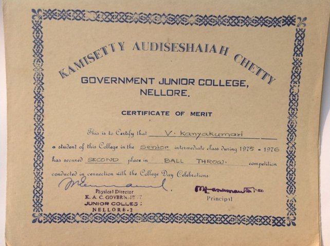 Mathaji’s  Studied  School – 1970  @  Mandala Praja Parishat Pradamikonnatha Patasala,  Near Rama Theertha Village, Varini Dandigunta,  Vidavaluru Mandalam,  Nellore District,  Andhra Pradesh.