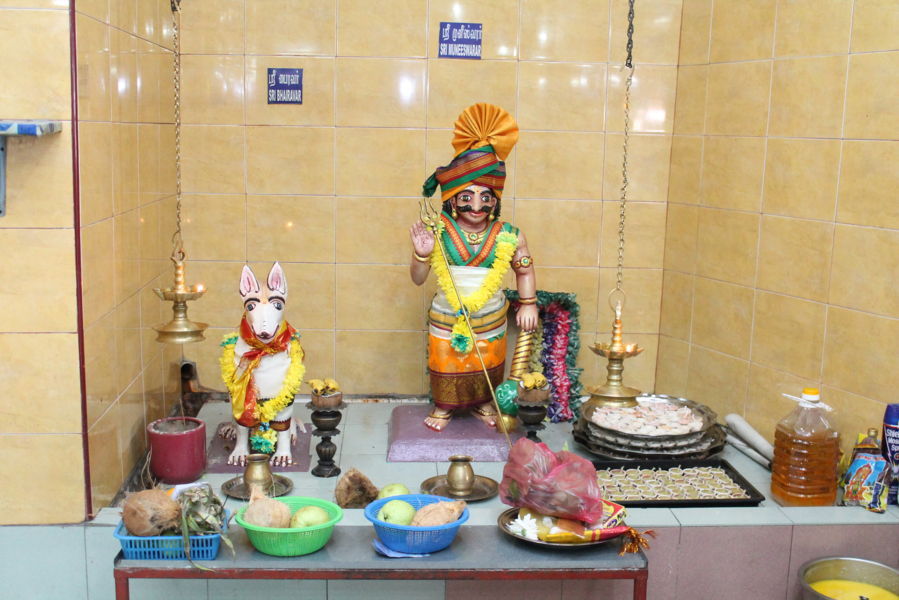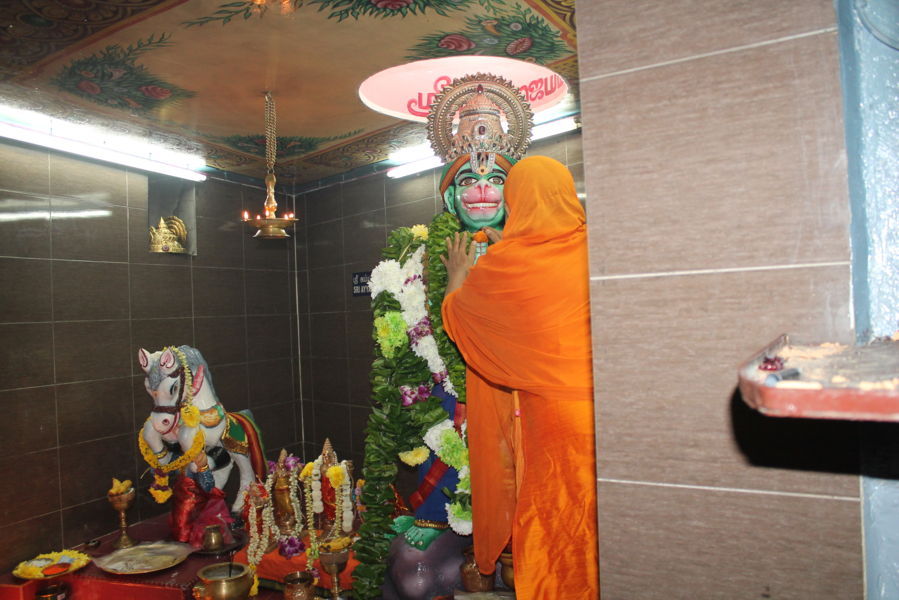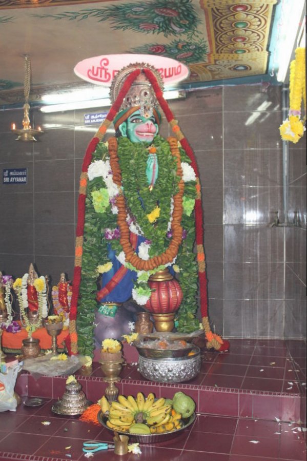 The distinctive feature in this temple is that the statue of Lord Anjaneyar had turned his direction, facing the Straits of Malacca. Lord Anjaneyar’s statue is believed to be looking in the direction of Sri Lanka. The reason Lord Anjaneyar had turned his head was due to the slaughter that was occurring in the shrine. Meat offerings together with intoxicating liquors were being served to other deities in the shrine, and this offended Lord Anjaneyar. This took place in the year 1996, and was recorded by a foreign photographer. The photographer had earlier taken photos of the shrine, and went again to the shrine to take additional photos. He was stunned at the change of Lord Anjaneyar’s head and immediately informed the local dailies. The practice of slaughtering poultry, serving alcohol, séances at the shrine was stopped, and the presence of Lord Anjaneyar has grown stronger.