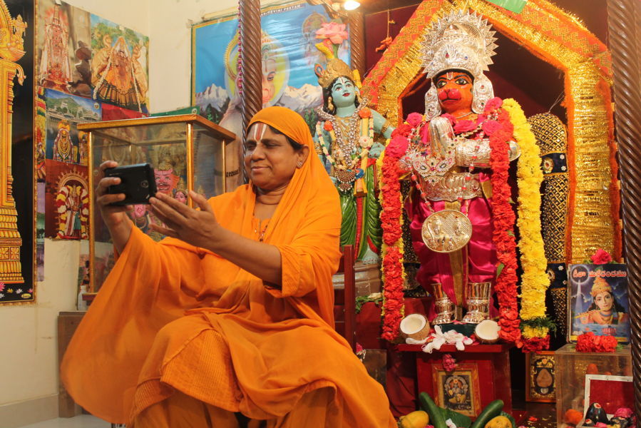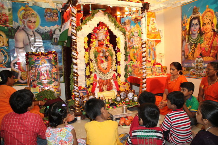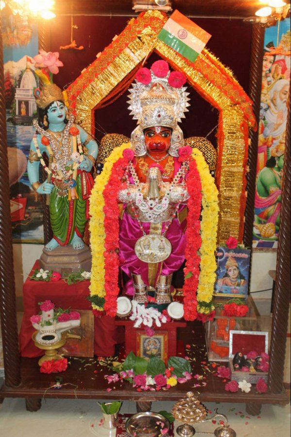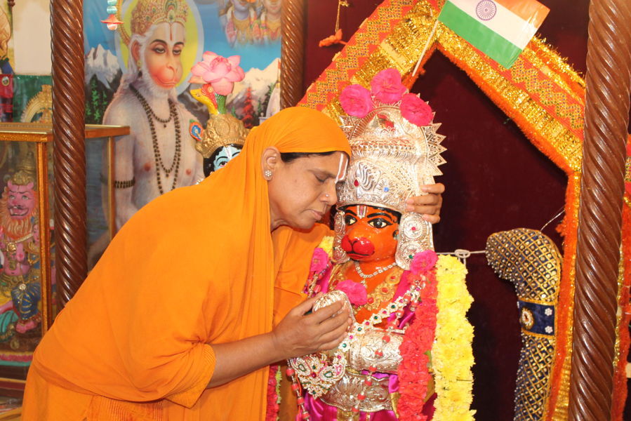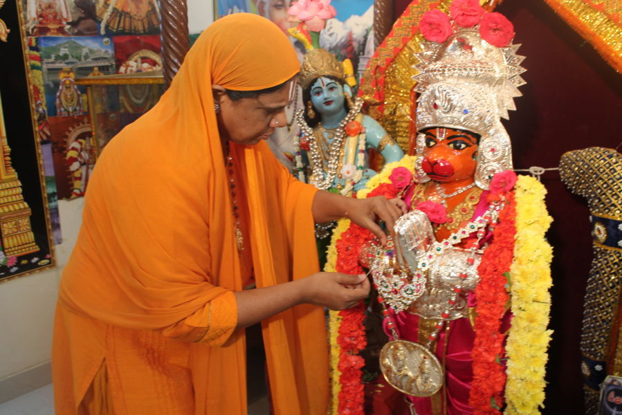 Mathaji tieing rakhee to lord Hanuman